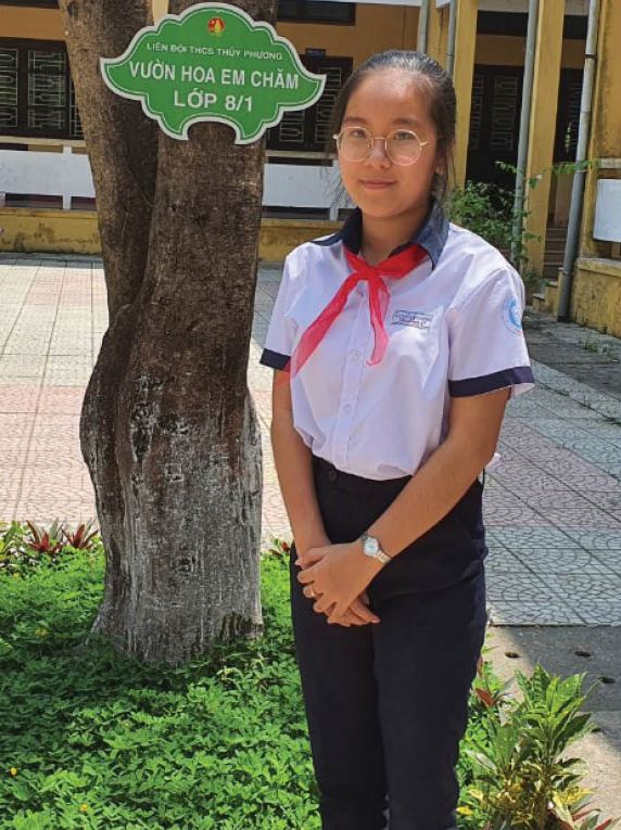 Được Liên đội Trường THCS Thủy Phương tin tưởng giao nhiệm vụ chăm sóc Bà mẹ Việt Nam Anh hùng Nguyễn Thị Tuyết trên địa bàn phường cho lớp mình, Phương đã lên kế hoạch chi tiết, cụ thể cho từng nhóm bạn trong lớp để tuần nào cũng có nhóm bạn giúp Mẹ dọn dẹp nhà cửa, sân vườn và trò chuyện để Mẹ vui.