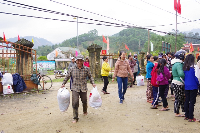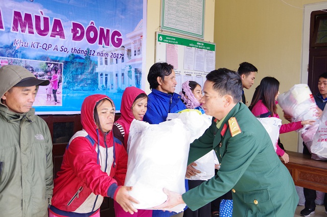 Mỗi người một tay, các bạn trẻ cùng cán bộ Đoàn 92 nhanh chóng di chuyển những phần quà về vị trí tập kết, tranh thủ trao cho bà con về kẻo lạnh. 3 chuyến xe tải đầy ắp áo quần, gần 2.000 quyển vở học sinh, 350 bộ áo quần mới, đồng phục học sinh cùng 1,7 triệu tiền mặt... được trao đến tận tay bà con là thành quả của hơn 1 tháng những TTTTN kêu gọi cộng đồng mạng, các nhà hảo tâm cùng chung tay giúp đỡ.