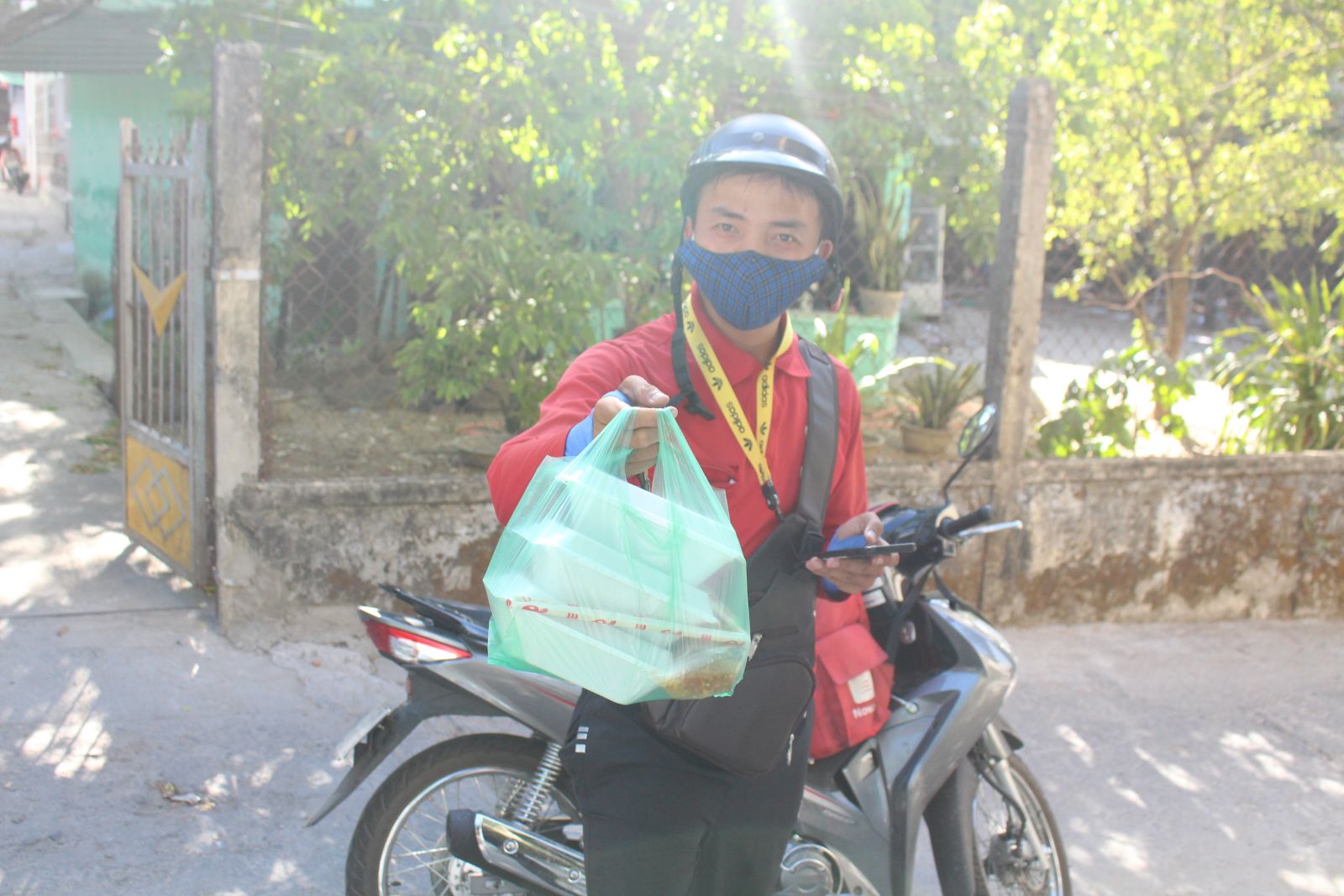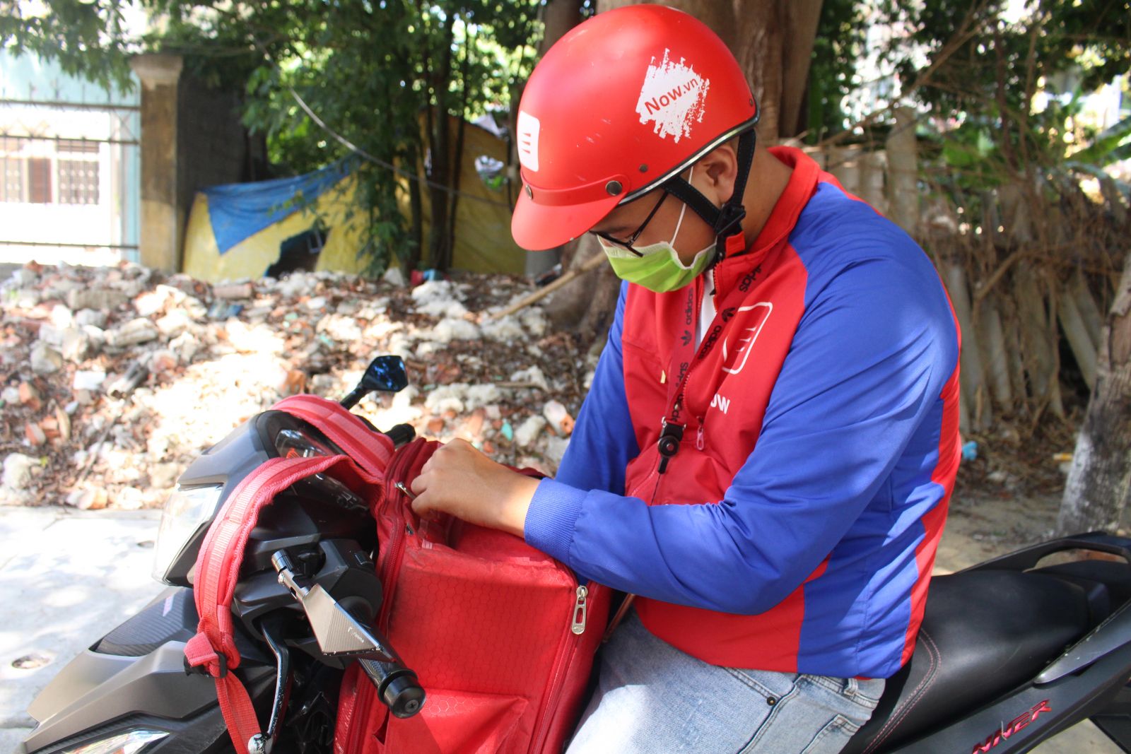 “Bên dịch vụ Dilivery now, các đơn hàng được thông báo trên hệ thống trực tuyến, cứ ai nhanh tay hơn thì nhận đơn và được đi giao hàng”, Nhân chia sẻ về cách thức làm việc. Chàng trai cho biết thêm, với mỗi đơn hàng có khoảng cách 3km shipper sẽ nhận được 15.000 đồng, khoảng cách xa hơn, mỗi km cộng thêm 5.000 đồng. Sau khi nhận được đơn hàng, chàng trai lao ra đường giữa cái nắng gay gắt.