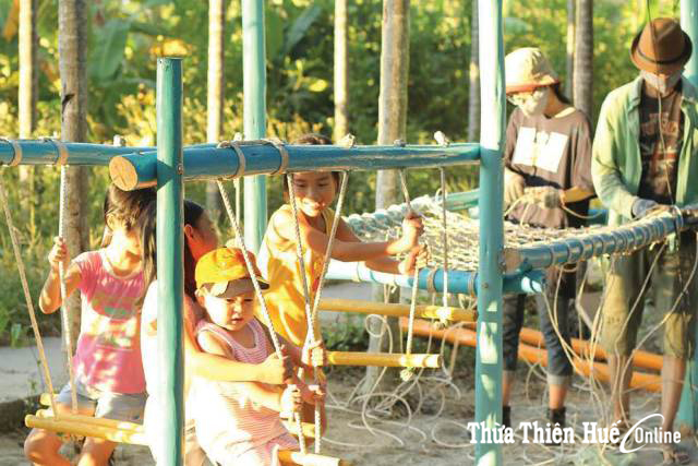 Trẻ em thích thú với các trò chơi ở sân chơi giá rẻ nhà văn hóa Kim Long do CLB Viên gạch hồng thực hiện
