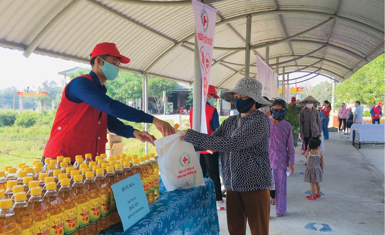 Chỉ trong vòng hai tháng, Hội CTĐ tỉnh đã cấp phát cho cộng đồng hơn 75 nghìn khẩu trang, gần 32 nghìn chai dung dịch rửa tay sát khuẩn, 570 bánh xà phòng. Ông Nguyễn Ngọc Hùng, Chủ tịch Hội CTĐ tỉnh Thừa Thiên Huế, thông tin: “12 nghìn kg gạo, 700 thùng mì gói và số tiền mặt trị giá 365 triệu đồng từ nhiều nguồn khác nhau cũng đã được cấp phát để hỗ trợ cho người dân. Ngoài ra, 500 bộ quần áo bảo hộ và 1.200 chai sữa trị giá gần 200 triệu đồng cũng đã được chúng tôi kịp thời gửi đến đội ngũ bác sĩ, nhân viên y tế, những “chiến sĩ” trên tuyến đầu chống dịch”.