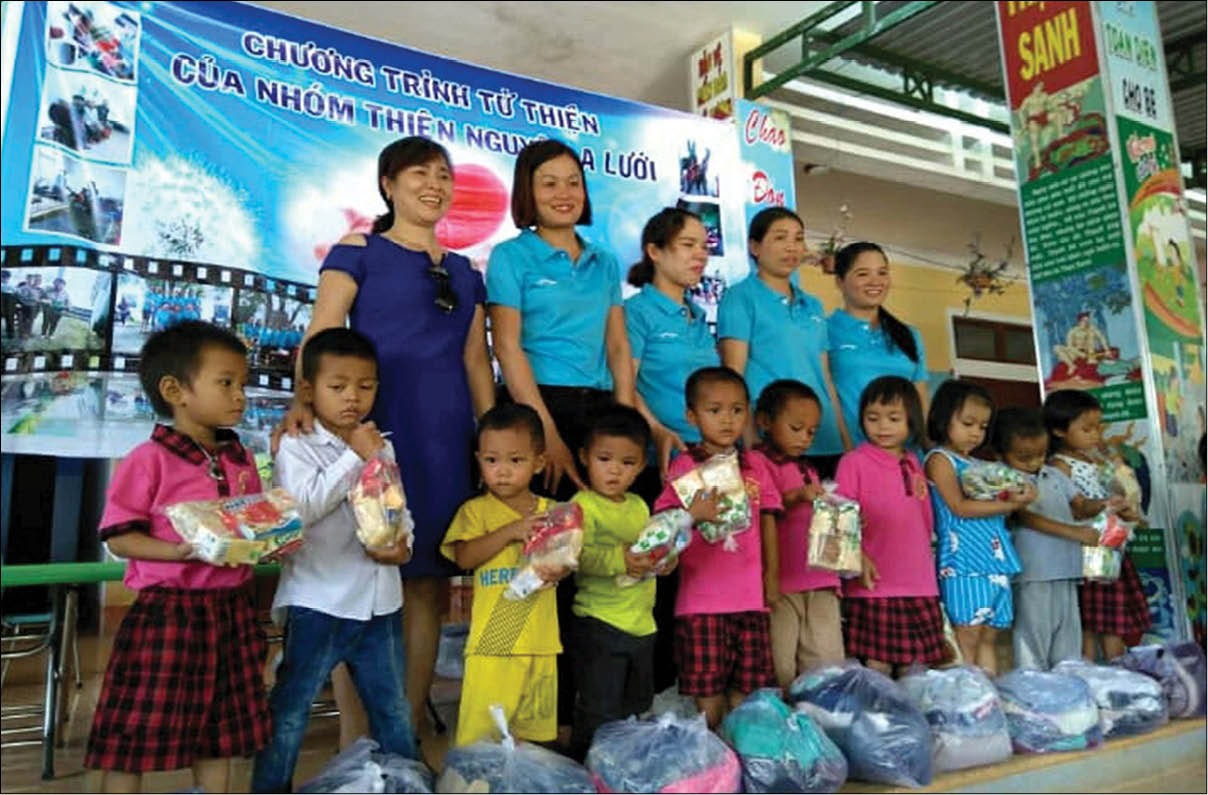 Giúp đỡ học sinh nghèo là hoạt động luôn được cô Hoàng Thị Đảng (đứng ngoài cùng bên trái) đặc biệt quan tâm