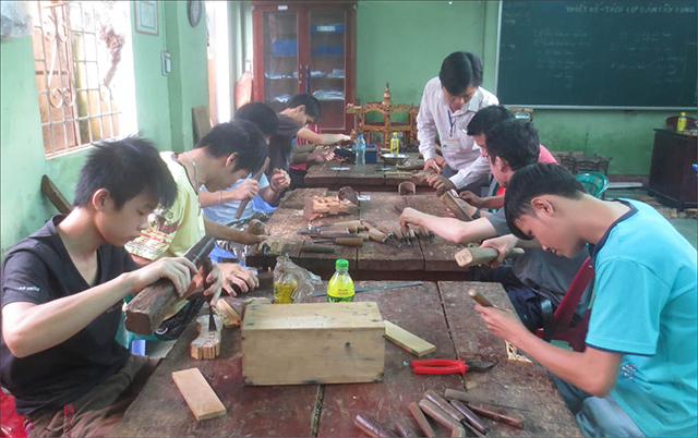 Người khuyết tật học nghề tại Trung tâm Dạy nghề và tạo việc làm cho người tàn tật. Ảnh: Trung tâm dạy nghề NKT