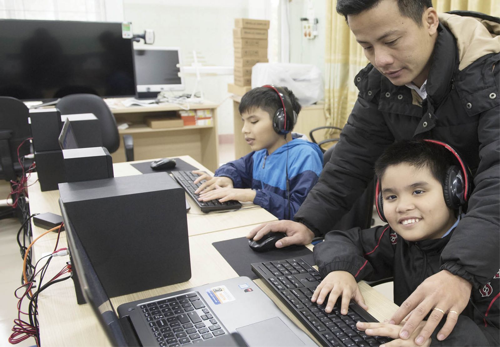 Trẻ em khiếm thị được tiếp cận công nghệ sớm nhờ hoạt động đối ngoại hiệu quả. Ảnh: HỘI NGƯỜI MÙ CUNG CẤP