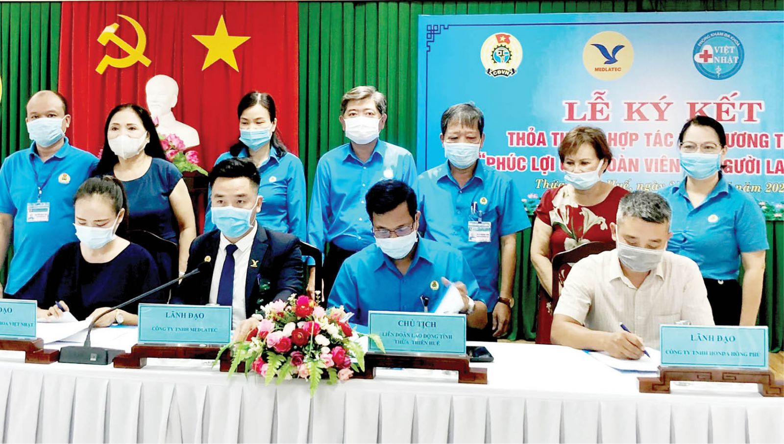 Theo chị Hoàng Thị Như Thanh, Chủ tịch LĐLĐ TP. Huế, hiện LĐLĐ TP. Huế đã ký kết phúc lợi với hai đơn vị, mang lại lợi ích cho người lao động như được xét nghiệm tổng quát miễn phí, được giảm 40% phí khi lưu trú tại một số khách sạn, khu nghỉ dưỡng trên địa bàn thành phố. “Ngoài ra, LĐLĐ TP. Huế đã ký văn bản ghi nhớ với 8 công ty, doanh nghiệp, hợp tác xã nông nghiệp khác, chỉ chờ dịch COVID-19 được kiểm soát, chúng tôi sẽ ký kết phúc lợi để chăm lo đoàn viên thông qua hình thức phiên chợ không đồng, giảm giá mua hàng…”, chị Thanh cho hay.