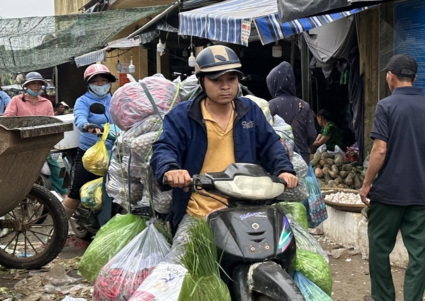 | Những chuyến xe hàng tấp nập rời chợ |