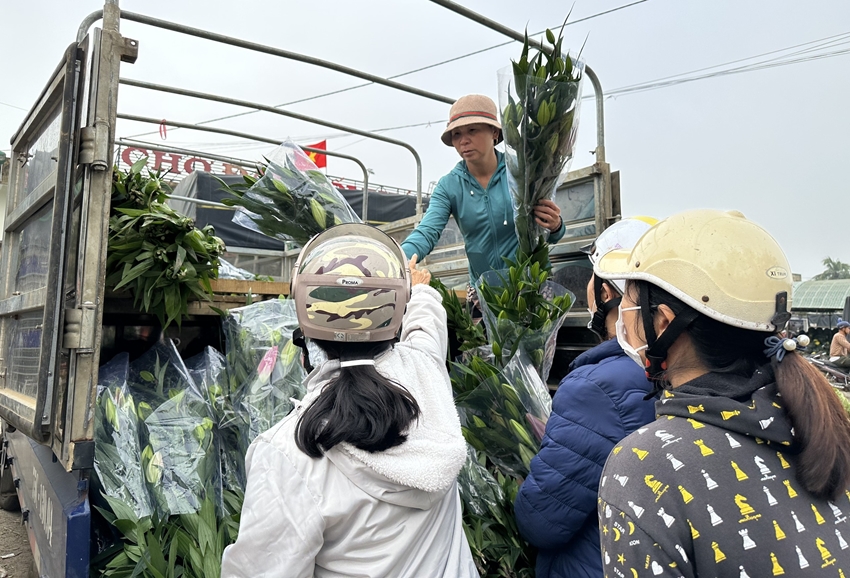 Nhanh tay chọn cho mình mấy chục bó hoa ly A Lưới, chị Thúy, một tiểu thương cho biết: “Bữa nay, người dân cũng bắt đầu “ưu ái” với ly trồng trong tỉnh, không những giá thành rẻ, mà khi vận chuyển gần, hoa không bị ướp lạnh nên hoa để được lâu, khi nở không bị rủ cánh. Thường thì giá hoa sỉ dao động từ 100-150 ngàn đồng/ bó”.