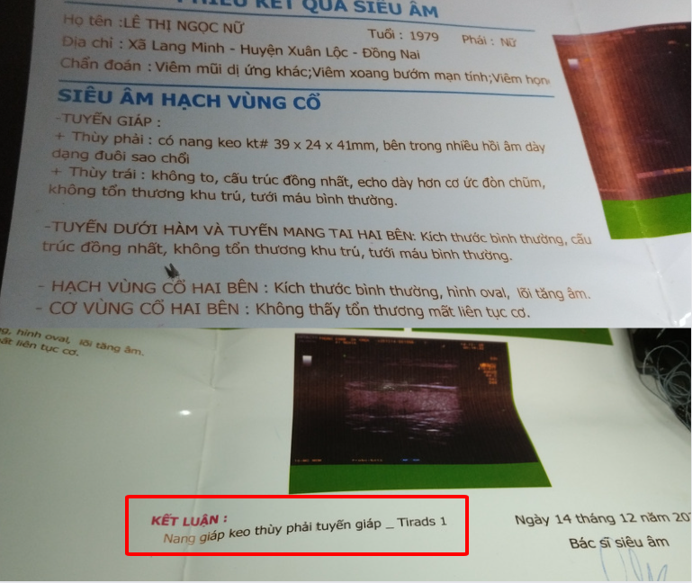 | Kết quả siêu âm cho thấy chị Ngọc Nữ mắc nang tuyến giáp |