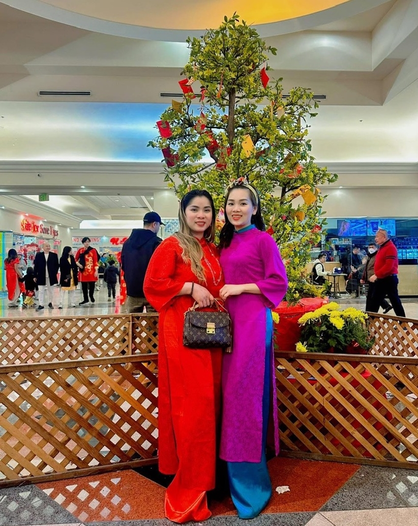 | Việt kiều Mỹ xúng xính trong tà áo dài đón tết cổ truyền trên đất khách. Ảnh: NVCC |