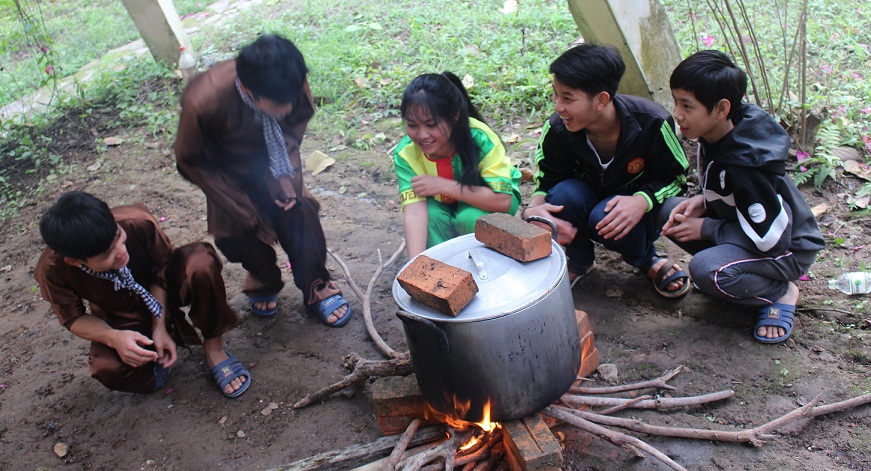 Các em Làng trẻ em SOS nấu bánh chưng xanh đón Tết