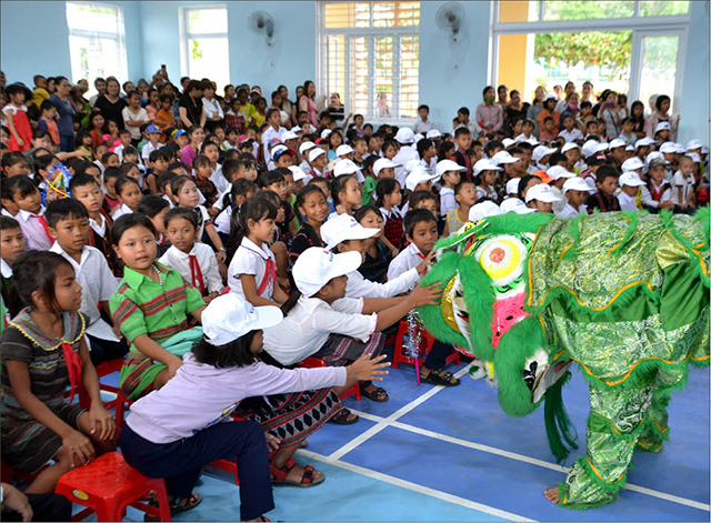 Các em học sinh Trường tiểu học A Ngo (A Lưới) thích thú với múa lân