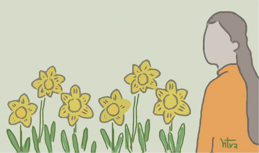 Trước cổng nhà tôi có một cụm bông trang đỏ, cao ngang vai người lớn, mỗi mùa lại rộ lên từng chùm hoa rực rỡ. Trên góc sân là một khóm hoa thủy tiên, loài hoa mà mẹ vẫn gọi là hoa báo mưa, hoa huệ mưa. Lạ lùng thay, trời càng đổ mưa to, hoa càng nở tưng bừng, những cánh màu hồng mỏng manh nhưng bền bỉ.
