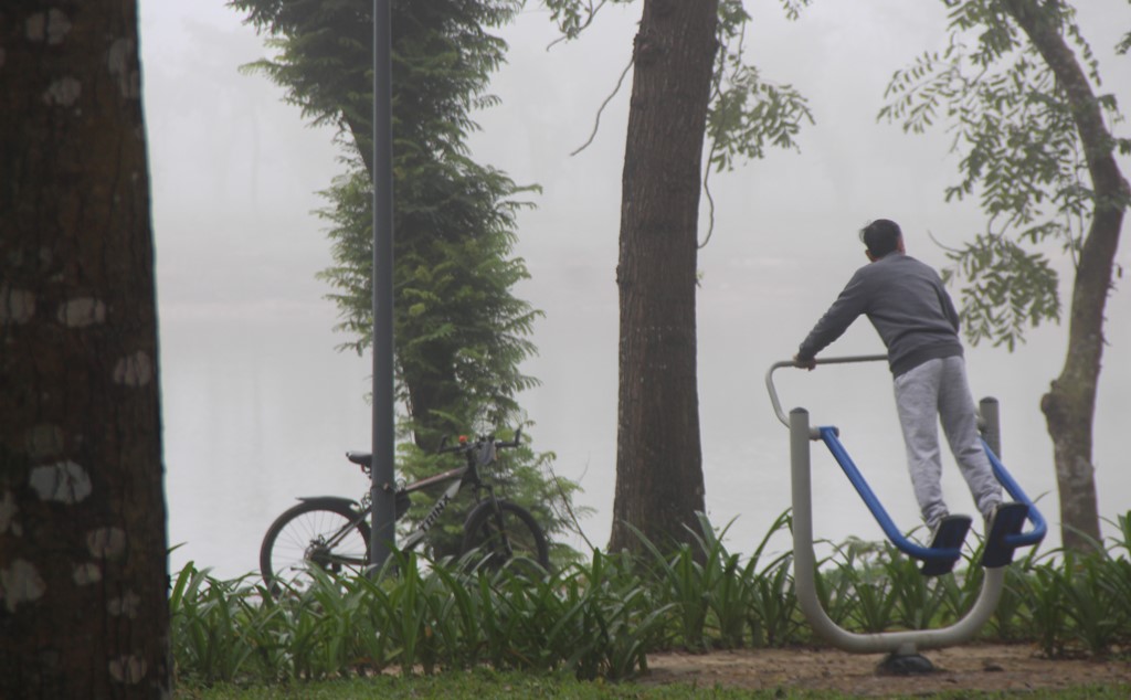 Người dân tập thể dục ở công viên với tầm quan sát hạn chế