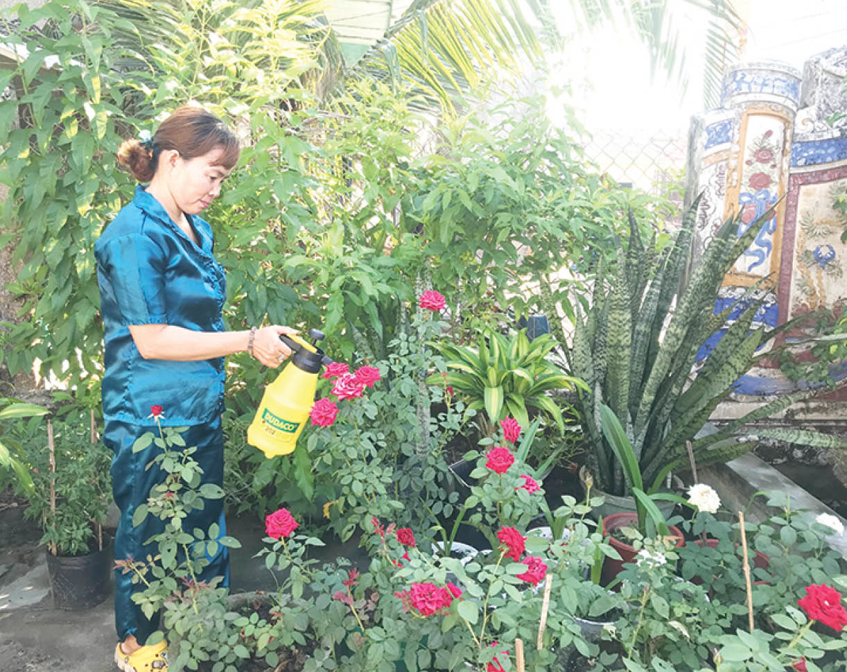 Chị Khuyên (Phú Diên, Phú Vang) chăm sóc vườn hoa của mình