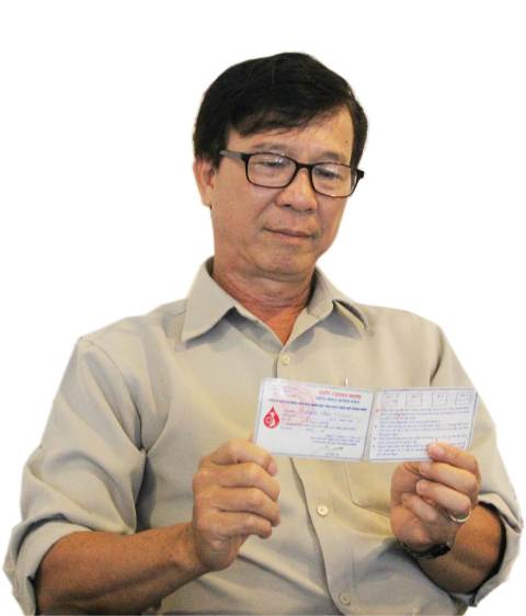 Ông Thạnh xem lại giấy chứng nhận hiến máu