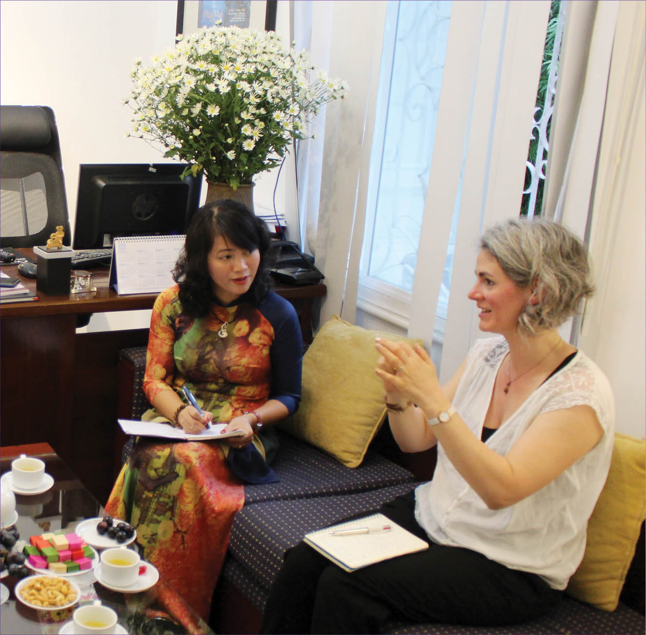Ths. Đinh Thị Hoài Trai làm việc cùng chuyên gia nước ngoài