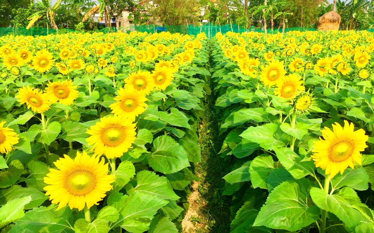 Cánh đồng hoa hướng dương với tên gọi "Vườn Lạc Dương" của anh Chế Quang Tám rộng khoảng 7.000m2, diện tích để trồng loại hoa này khoảng 5.000m2