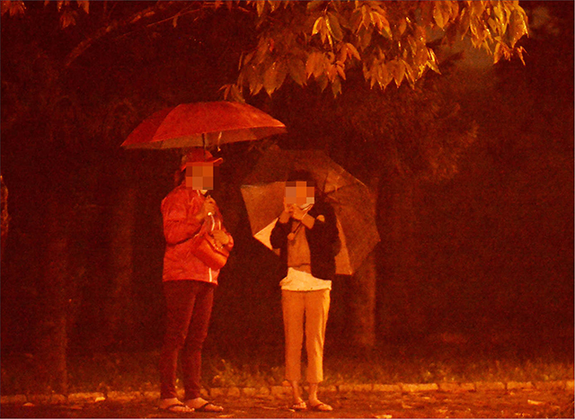 Đi tiếp khoảng 500m, sau một hồi ngần ngừ, nhóm phóng viên tiến lại chiếc ghế đá. Chưa kịp mở miệng, một phụ nữ ngồi trên ghế hỏi ngay: “Hai anh “đi” luôn hay răng? Ngày ni ế quá, mở hàng em lấy rẻ 3 xị”. Sau khi giới thiệu là người của nhóm đồng đẳng đi tuyên truyền HIV/AIDS, người phụ nữ cho biết mình tên là T.T.H. “Nói thiệt em năm ni 48 tuổi rồi. Dạng hàng “quá đát” nên phải dạt ra đây kiếm miếng cơm chứ thật lòng ai mà muốn chường mặt ra đường như ri”. Mấy anh không đi thì cho em đỡ mấy chục, chút nộp tiền bảo kê. Vừa nói chị H. vừa kín đáo nhìn về phía bên kia đường, nơi có chiếc xe máy cùng một gã đàn ông mà nhóm phóng viên cứ tưởng bác xe ôm nào đó đang đợi khách.
