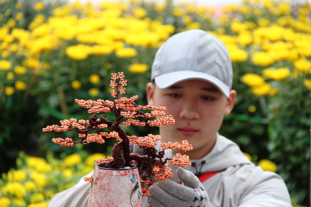 Ngoài các loài cây cảnh, hoa quen thuộc năm nay thị trường còn xuất hiện loại bon sai làm bằng lõi đồng với mức giá từ 300.000 đồng- 1 triệu đồng/chậu