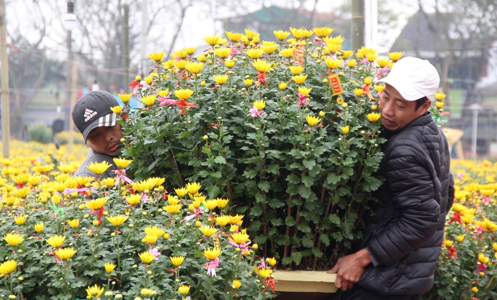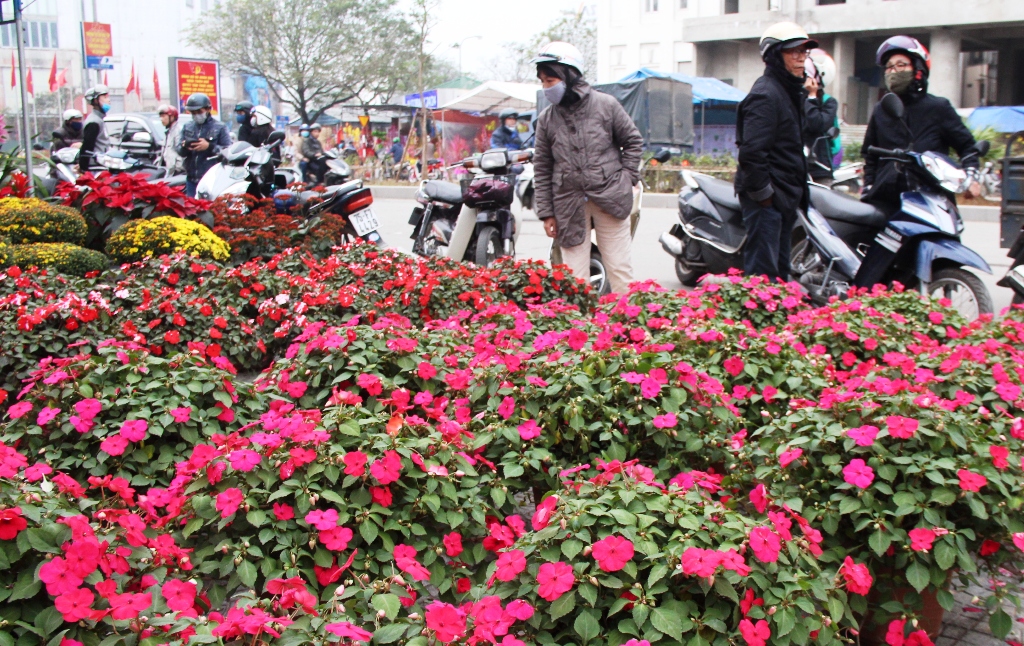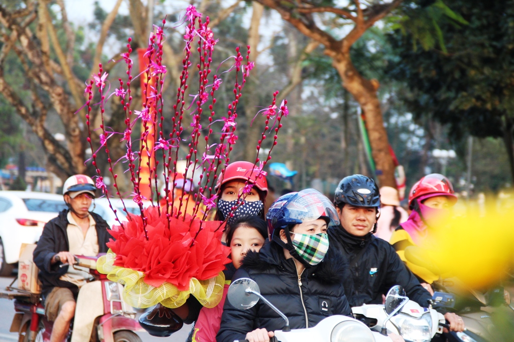 Khung cảnh phố phường những ngày cuối năm đâu đâu cũng thấy cảnh người dân cầm hoa về chưng Tết