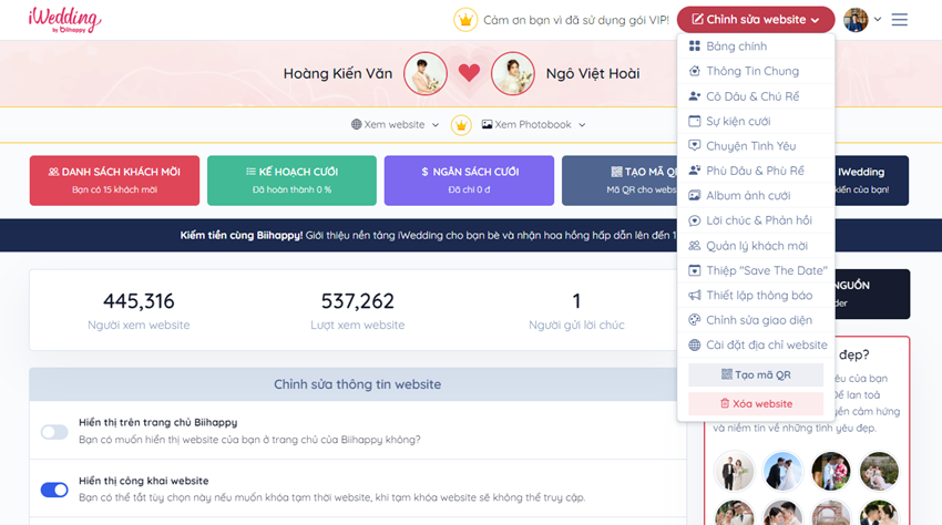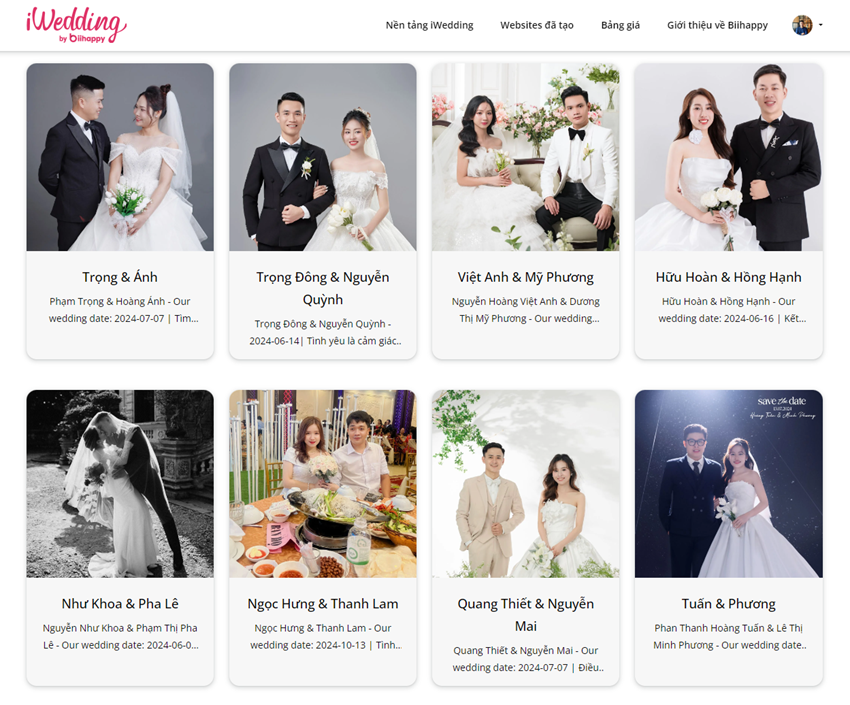 ● Bước 1: Truy cập và đăng nhập vào trang web https://biihappy.com/iwedding