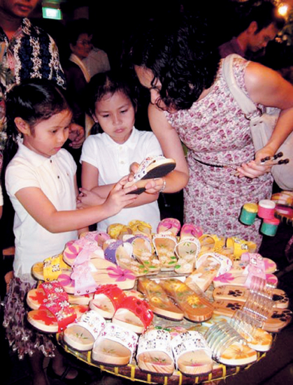 Mua guốc gỗ tại chợ Tết Gia Lạc