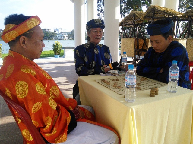 Cờ tướng gồm các kì thủ có thành tích cao của thành phố. Mỗi nước đi của các kì thủ, trọng tài sẽ hô to, phía trước có bàn cờ lớn dựng đứng, người nghe hiệu lệnh di chuyển quân cờ. Dù không trực tiếp đứng xem hai kì thủ triển khai nước cờ, người xem vẫn thấy được đường đi nước bước, thế trận của bàn cờ. “Không đặt nặng vấn đề thắng thua mà chú trọng vào việc trình diễn những thế cờ đẹp”, ông Tôn Thất Đạt (83 tuổi) là trọng tài của các trận đấu cờ tướng chia sẻ.