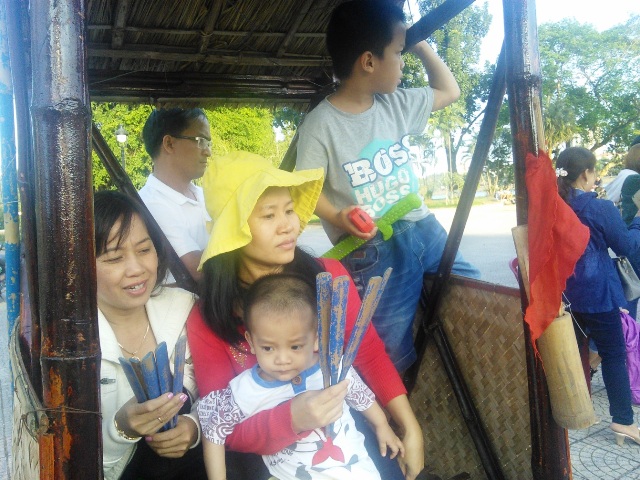 Khác với cờ tướng có lượng người chơi cố định, bài chòi là trò chơi dân gian thu hút sự tham gia của đông đảo lứa tuổi, từ các em thiếu nhi, nam thanh nữ tú đến các cụ già. Trò chơi mang tính dân dã, các em nhỏ hớn hở chui vào chòi ngồi chơi theo ông bà, cha mẹ. Bà Nguyễn Thị Gái (trú tại phường Phú Bình, TP. Huế) dẫn theo hai cháu nhỏ cùng chơi bài chòi hào hứng: “Tết năm nào tôi cũng ra công viên Thương Bạc du xuân, thích nhất là chơi bài chòi. Thời hiện đại rồi mà được nghe hò là thấy quý lắm”. Tiếng kèn, trống, những điệu hò pha lẫn tiếng cười của người chơi tạo nên âm thanh rộn rã, tươi vui trong ngày Tết.