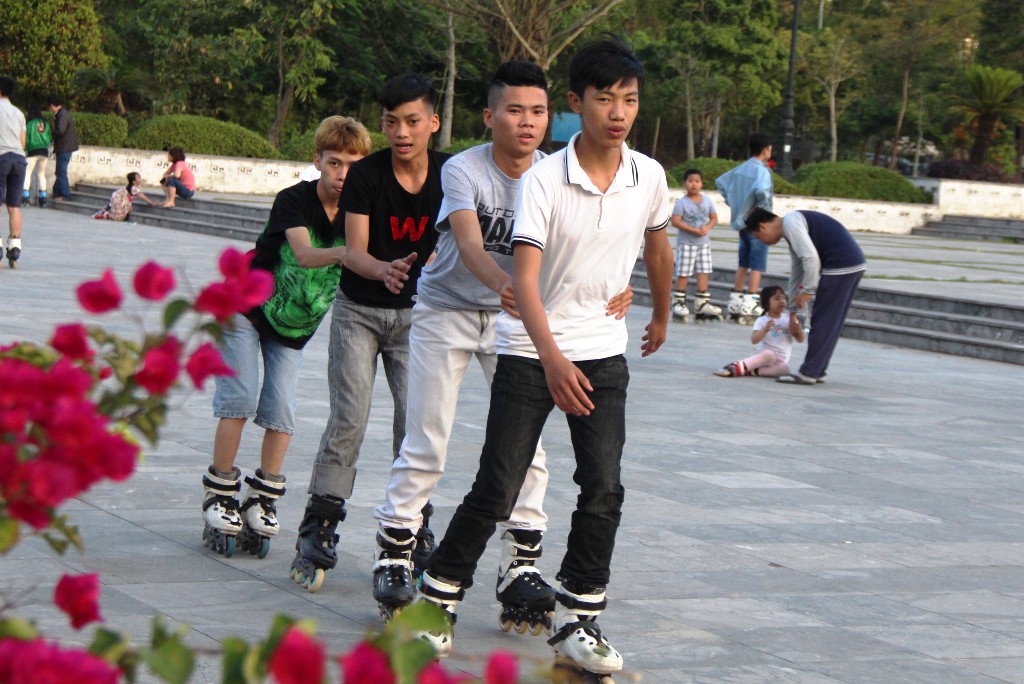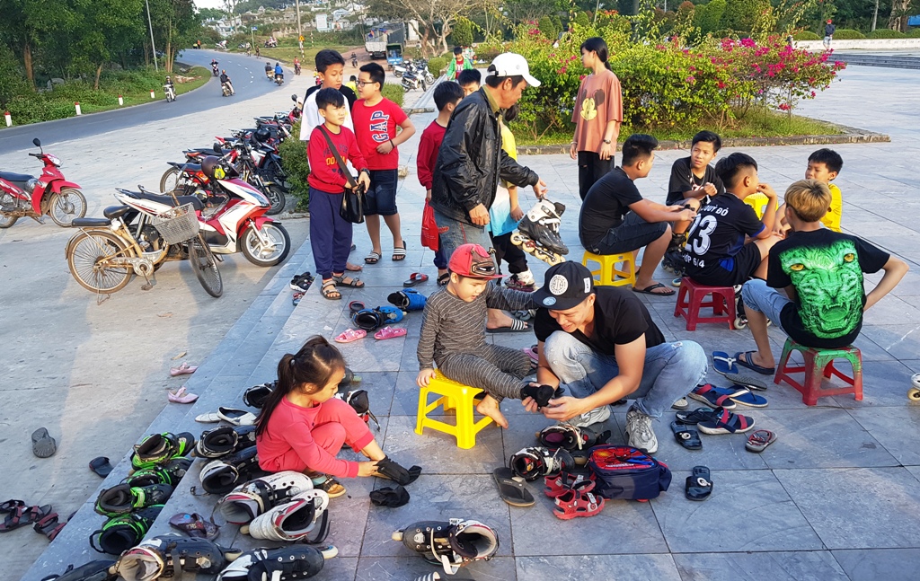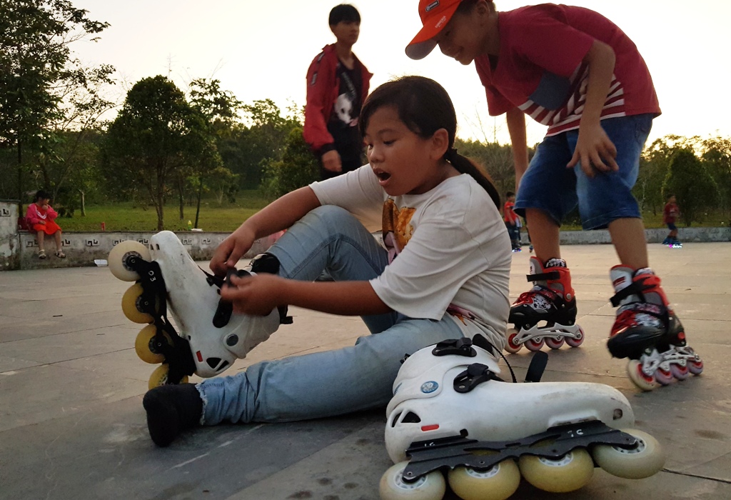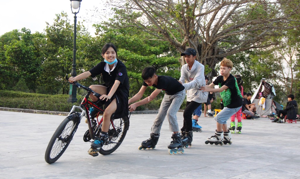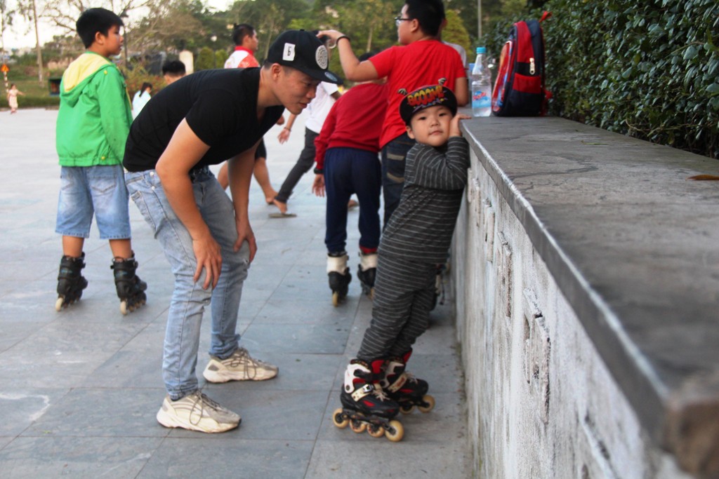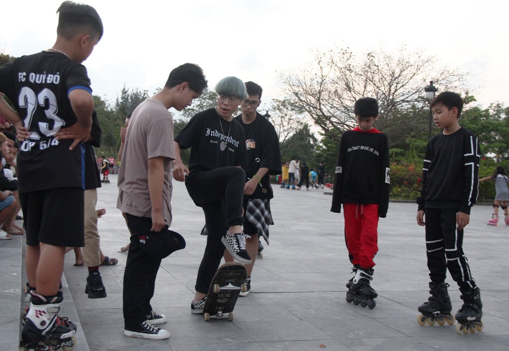 Bất kể ngày thường hay cuối tuần, cứ sau 4h chiều, không gian này trở nên sôi động tiếng nói cười của những người trẻ, và em nhỏ. Sau khi mang đôi giày vào chân cùng hai tấm bảo hộ gối, các bạn trẻ tha hồi trình diễn theo những đường uốn lượn trên mặt sân rộng lớn, bằng phẳng.