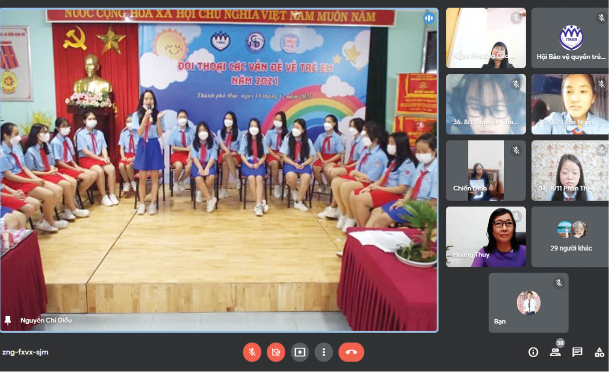 Nhằm tạo sự chuyển biến về nhận thức, hành động của toàn xã hội về thực hiện quyền trẻ em, hướng tới xây dựng môi trường sống an toàn, thân thiện, bình đẳng và lành mạnh cho mọi trẻ em, tạo điều kiện cho trẻ em được được tự do bày tỏ ý kiến, quan điểm, tâm tư, tình cảm và nguyện vọng của bản thân trong việc bảo vệ quyền trẻ em và những vấn đề mà các em quan tâm, ngày 17-18/12 vừa qua, Hội Bảo vệ quyền trẻ em tỉnh phối hợp với Phòng Giáo dục và Đào tạo TP. Huế, Trường THCS Nguyễn Chí Diểu, Trường THCS Chu Văn An tổ chức đối thoại với trẻ em theo hình thức trực tuyến về việc thực hiện quyền trẻ em (như không bị phân biệt đối xử, xao nhãng, quyền chăm sóc sức khỏe, quyền học tập...) trong giai đoạn dịch COVID-19 đang bùng phát. Tại đây, những ý kiến của các em được lắng nghe, những câu hỏi được giải đáp, và cả những tâm tư, thắc mắc cũng được các em mạnh dạn chia sẻ.