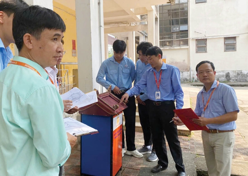 | Thầy và trò cùng kiểm tra, đánh giá sản phẩm "thùng rác thông minh" |