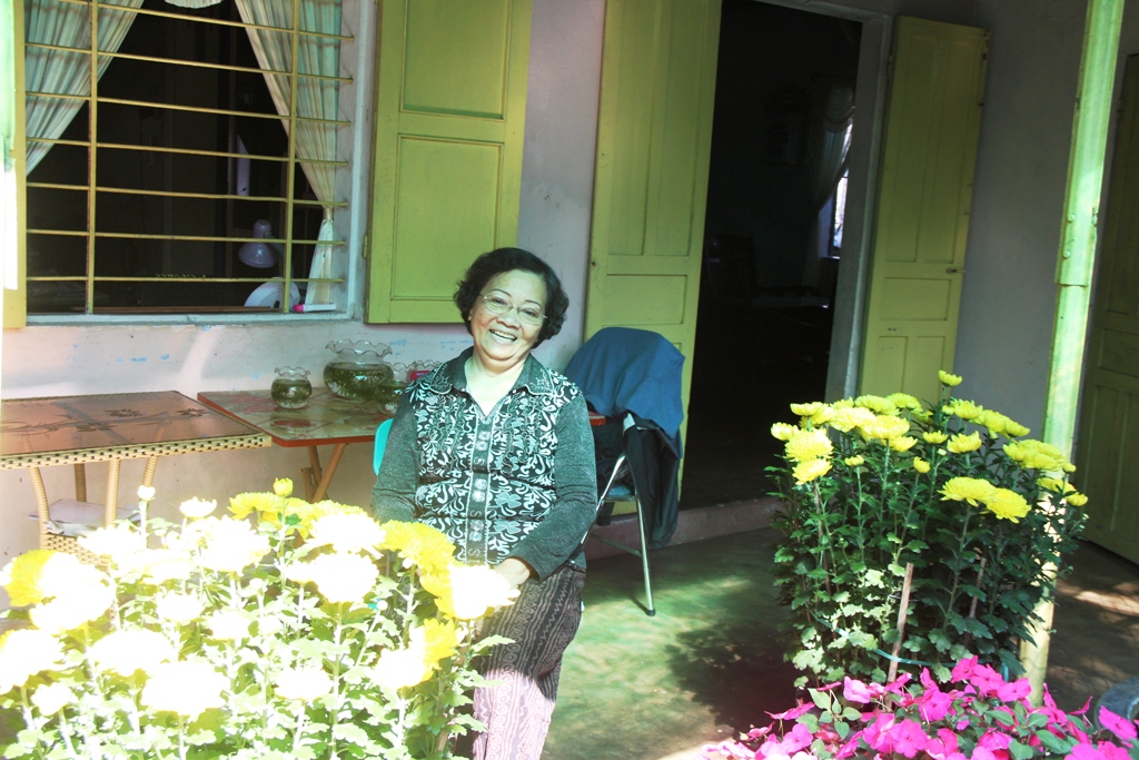 Bà Nguyễn Thị Kim Cúc nở nụ cười tươi bên chậu hoa trang trí tết. Bà Cúc năm nay 75 tuổi, sống ở thượng thành hơn 30 năm. Bà nói rằng, đã chuẩn bị mọi thứ cho tết. Bà rất vui và sẵn sàng di dời khỏi thượng thành bất cứ khi nào vì đó là chủ trương chung của Nhà nước. "Người dân chúng tôi đồng thuận, miễn sao có chỗ ở mới ổn định là vui rồi", bà Cúc nói