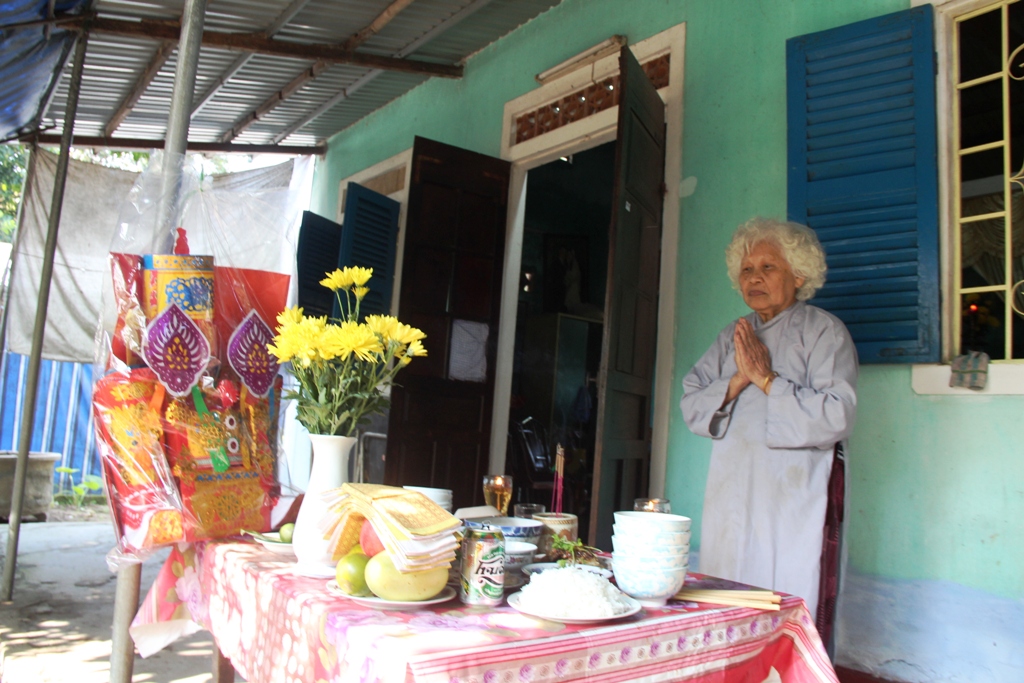 Mâm cúng tất niên cuối năm của bà Phan Thị Chuyên, 84 tuổi ở thượng thành đường Xuân 68. Với bà Chuyên, kí ức thượng thành gắn với cuộc đời bà. 25 tuổi lấy chồng, về đây sinh sống, con đàn cháu đống, giờ đây bà cho biết sẽ rất buồn nếu một mai phải xa thượng thành
