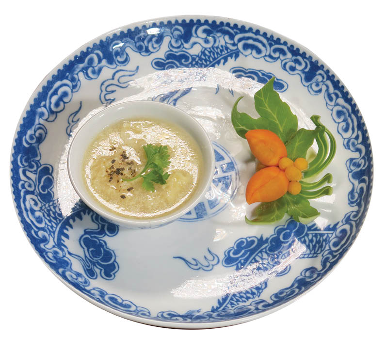 Thái dương bối nguyệt thủy là món canh bổ được phối vị từ 40 loại nguyên liệu với quá trình chế biến riêng biệt. Được uống lúc đang ấm nóng, món canh này thơm ngon, có vị ngọt tự nhiên và thoảng hương thơm của dược liệu. Đây là món ăn được dùng cho người tiêu hóa kém, khó hấp thu, giúp cơ thể giải độc và cân bằng dinh dưỡng... Cháo diên thọ cũng là món ăn có tác dụng bồi bổ cơ thể. Nguyên liệu chính của món cháo này là khoai mài, được nấu với cua cùng các loại dược liệu.