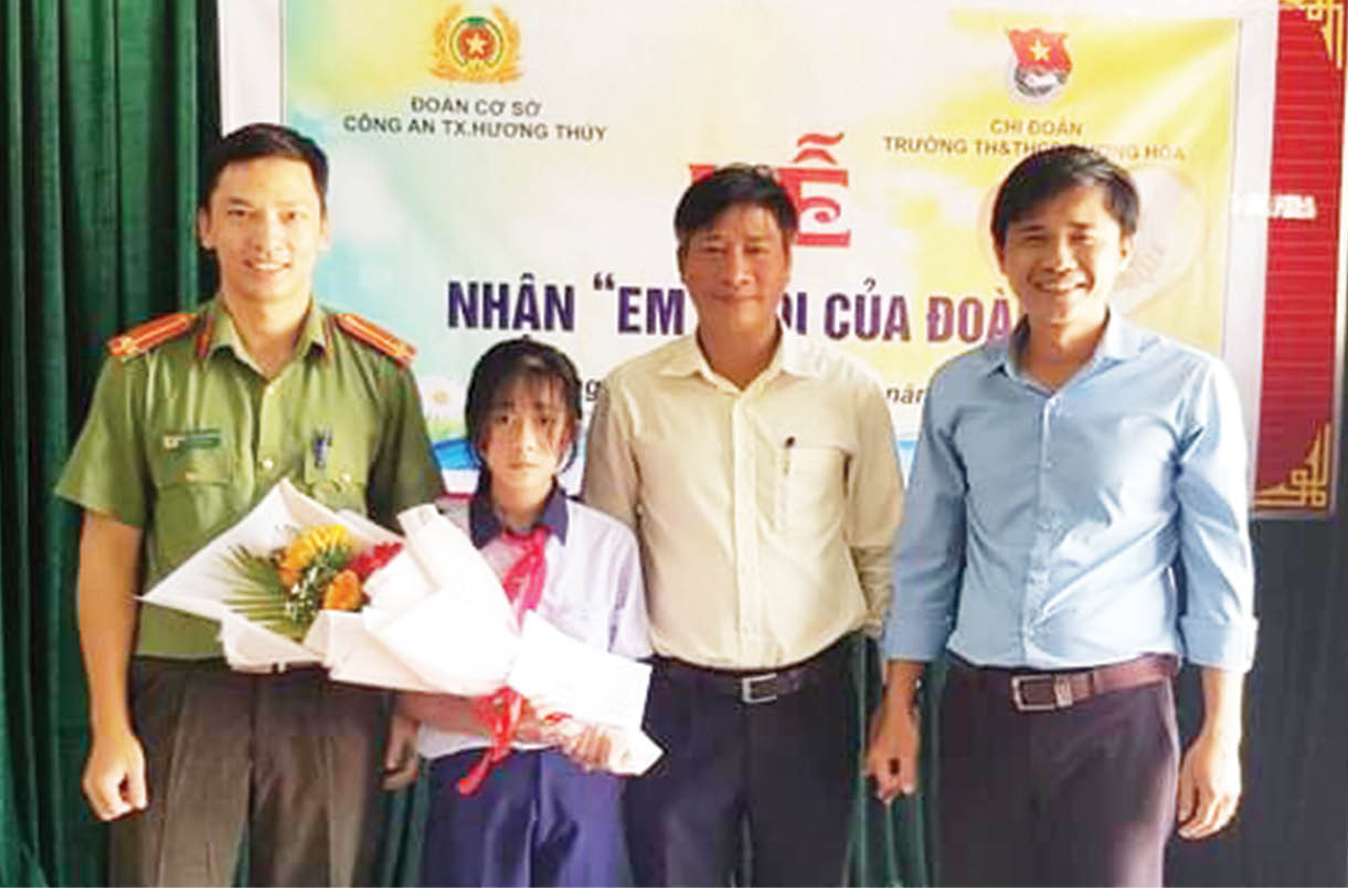 Mô hình “Em nuôi của Đoàn” được Đoàn cơ sở Công an TX. Hương Thủy triển khai từ năm 2014 đến nay và đã “tiếp sức” cho nhiều học sinh có hoàn cảnh khó khăn vươn lên trong học tập. Có những “em nuôi” đã được hỗ trợ, chắp cánh và đỗ đại học với số điểm đáng mơ ước như Nguyễn Phạm Thị Nhung (xã Thủy Bằng, TX. Hương Thủy, nay là P. Thủy Bằng, TP. Huế).