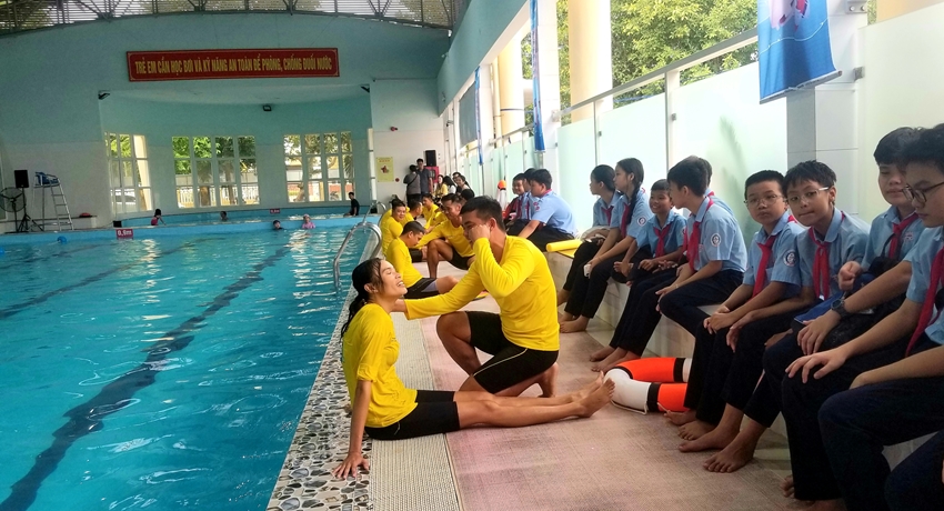 | Thực hành phòng chống đuối nước, cứu nạn cứu hộ cho các em học sinh |