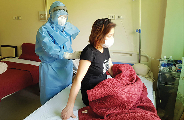 Kiểm tra sức khỏe bệnh nhân ở khu cách ly Bệnh viện Trung ương Huế Cơ sở 2. Ảnh: TUỆ NINH