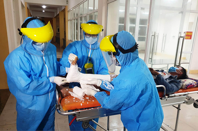 Các bác sĩ Bệnh viện huyện Phú Vang điều trị một chấn thương tại khu cách ly