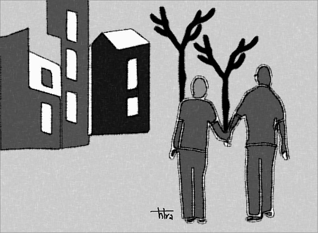 “Chuyện hay” bạn kể là về đôi vợ chồng, cụ ông 91 tuổi, cụ bà 86 tuổi sáng nào cũng nắm tay nhau chậm rãi đi bộ dọc đường Hùng Vương, từ đoạn chợ An Cựu lên hướng cầu Trường Tiền. Áo quần, mũ, giày thể thao, có thể mỗi ngày thay đổi một màu sắc, nhưng bao giờ hai cụ cũng mặc đồ đôi. Đặc biệt hai gương mặt luôn thảnh thơi, tươi cười. Mỗi khi cần phải qua đường, ông bao giờ cũng nắm tay bà chặt hơn, đi sát vào hơn để bà cảm giác yên tâm vì có bờ vai vững chắc để tựa vào.
