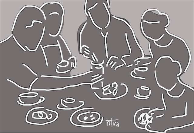 Mẹ đã suýt soát 80 tuổi, lưng đã còng. Mẹ tôi lại bị bệnh về xương khớp, hầu như năm nào cũng phải châm cứu một đợt dài. Cô em gái tôi sống cạnh nhà ba mẹ lại đang đi công tác. Vậy để lo một bữa ăn cho mười mấy người thật quá nặng nhọc so với sức khỏe và tuổi tác của mẹ. Tôi gợi ý, ba mẹ cứ mời mấy bác ra nhà hàng luôn cả hai bữa cho “gọn nhẹ”, có tốn kém hơn một chút nhưng mẹ đỡ vất vả. Thế nhưng mẹ nói, không phải mẹ tiết kiệm tiền, mà mẹ muốn niềm vui của ba được trọn vẹn nhất. Bởi bữa ăn ở nhà hàng dù thức ăn có ngon đến đâu cũng không có không khí ấm áp như bữa ăn gia đình. “Được ngồi trò chuyện thoải mái với bạn bè quanh mâm cơm ấm cúng, trong ngôi nhà của mình, chắc chắn ba các con vui lắm. Để ba vui, có vất vả mẹ cũng ráng, chuẩn bị từ từ rồi cũng xong thôi”.