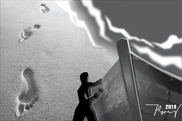 Chiều đó, Hiếu – chủ ghe mà anh đang sửa – bỗng dưng trở thành người bắc cầu khi nói với chúng tôi về công việc của người làm xuồng, sửa ghe còn lại. Nhớ cách mà Hiếu nói về những bước chân trên cát của người thợ “chị xem, da chân của anh Phúc còn cứng và dày hơn cả đế giày nữa. Thì cứ đi trên cát bỏng rứa mà vẽ!”. Đúng là nếu để ý khi gặp Phúc, mọi người sẽ nhận ra một lớp da dày cộp, chai đi qua năm tháng. Đám da dưới chân có lẽ không được chăm chút bằng cách cắt gọt bớt như trên đôi tay, như một cách cùng anh chiến đấu với cát bỏng, mỗi ngày. Chiều đó, Hiếu cũng đùa khi bảo rằng, tay ông Phúc không dành cho phụ nữ và trẻ con. Khi nắm thử tay người thợ làng chài, cảm nhận sự thô ráp ấy, ý nghĩ đầu tiên đến với tôi, là bằng sự chai sần và thô ráp đó, anh Phúc đã nuôi nấng cả một gia đình. Khi con cái đã lớn, đã có thể tự lo cho mình, anh lại tiếp tục lo cho cháu khi cha mẹ chúng gửi lại cho ông bà. Cuộc đời cứ tảo tần như thế, bằng những bước chân trên cát.