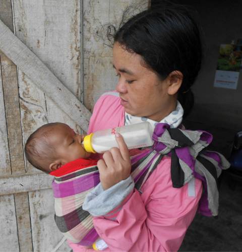 | Bé Sang được mẹ Hồng nâng niu chăm sóc |