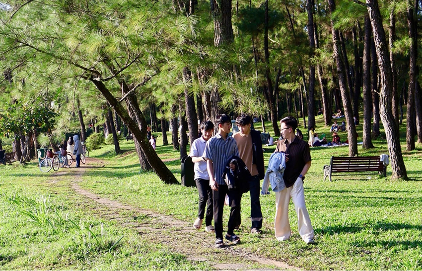 Giờ đây, hồ Thủy Tiên dần trở thành điểm sinh hoạt quen thuộc của người dân sống quanh khu vực đồi Thiên An. Một buổi sáng sớm, khi sương còn phủ mờ mặt hồ Thủy Tiên, tôi bắt gặp ở dưới tán thông vài người đi bộ chậm rãi, có người chạy bộ nhẹ rồi dừng lại hít thở. Vào những ngày cuối tuần, hồ Thủy Tiên đông hơn nhưng vẫn giữ được sự yên tĩnh.