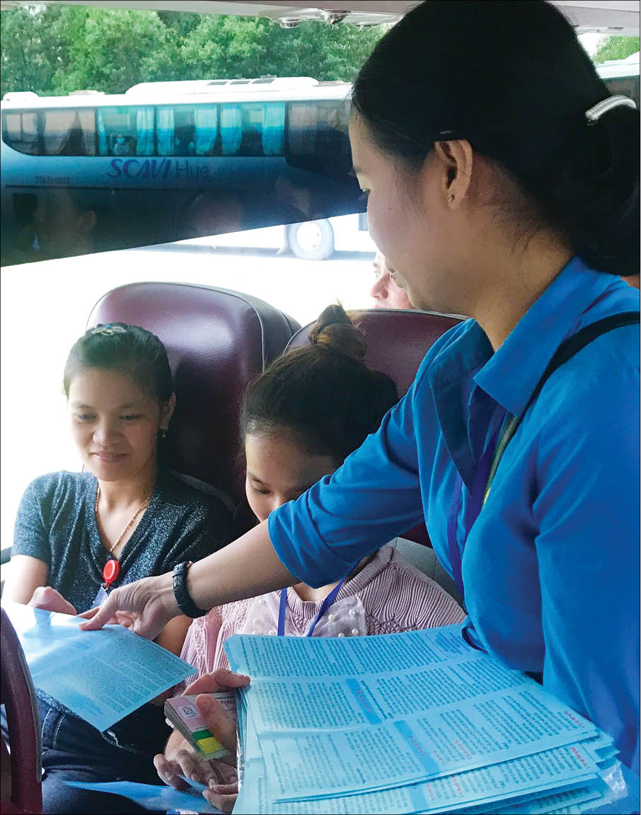 Trong dịp khai trương “Chuyến xe Công đoàn” hôm 2/11 vừa qua, tâm trạng các thành viên trong Ban tổ chức đều háo hức pha chút hồi hộp, lo lắng. Mọi người có mặt tại bãi xe đưa đón công nhân của Công ty Scavi Huế trước giờ tan ca từ rất sớm để chuẩn bị sẵn sàng.