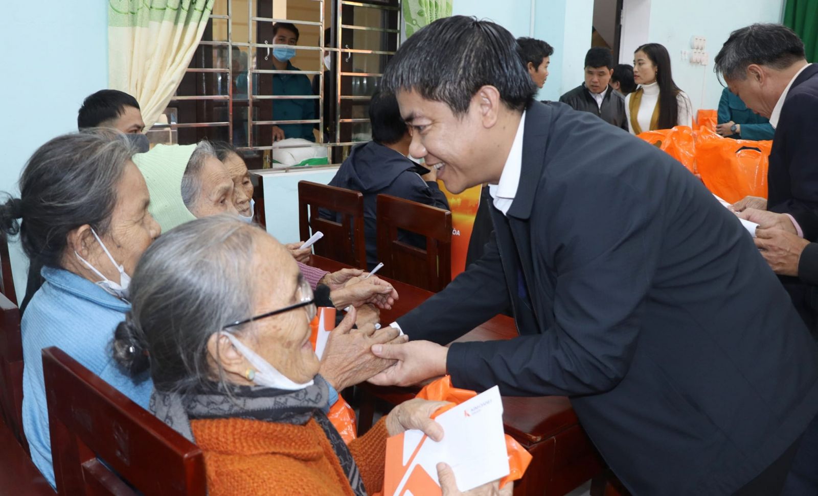Lãnh đạo huyện trao quà đến người nghèo cùng lời chúc bà con đón tết đầm ấm