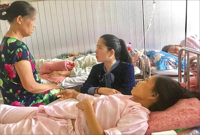 Na trao tận tay những chia sẻ của mạnh thường quân đến mẹ con chị Hiền tại Bệnh viện Trung ương Huế, cùng những lời động viên