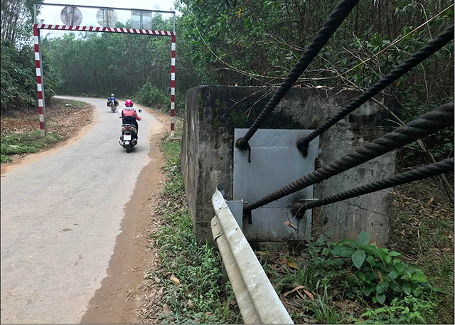 Để giải quyết tạm thời, chính quyền xã đã cho xây dựng các thanh chắn giới hạn độ cao, tải trọng xe; đồng thời cắt cử lực lượng chức năng túc trực, theo dõi và ngăn các xe quá tải lưu thông.