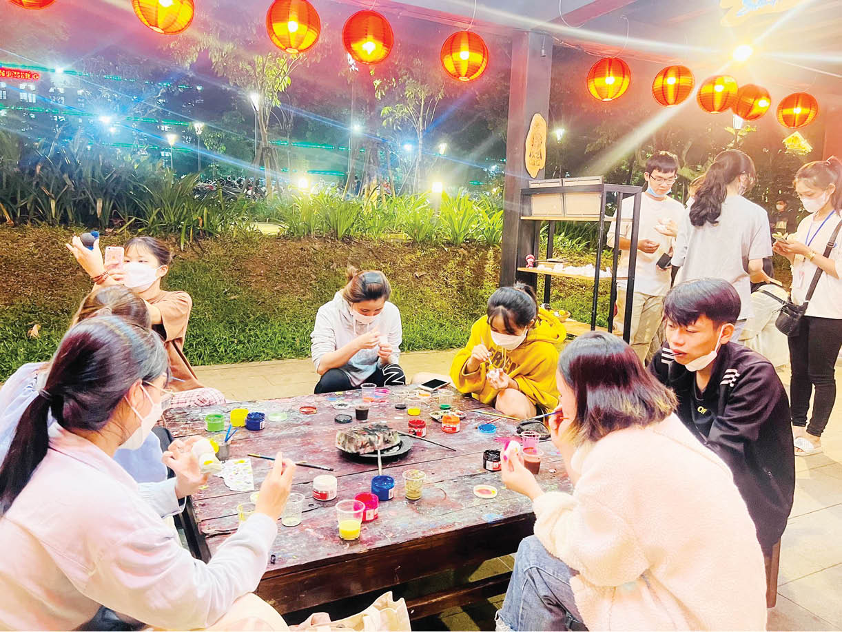 HNN - Chiều cuối tuần, khu tô tượng của nhà sách Phú Xuân trở nên tấp nập. Nhiều bạn trẻ chọn nơi đây làm địa điểm xả stress sau một tuần học tập, làm việc.