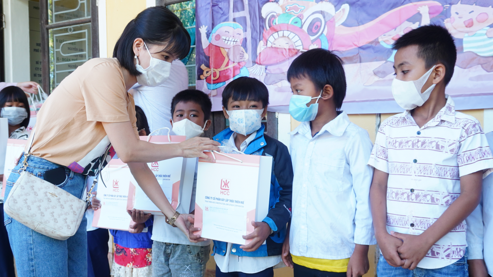 HNN.VN - Ngày 17/9, Quỹ Sen xanh (Báo Thừa Thiên Huế), Chi đoàn Báo Thừa Thiên Huế phối hợp với Công ty CP xây lắp tỉnh, Chi nhánh Ngân hàng Chính sách xã hội tổ chức chương trình "Trung thu cho em" tại Trường tiểu học A Đớt, xã Lâm Đớt, huyện A Lưới.