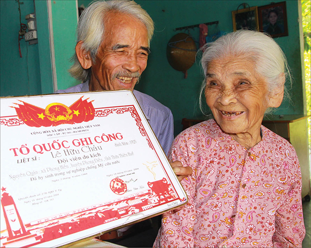 Trò chuyện với mẹ Hoàng Thị Ký (96 tuổi), trú tại thôn Bắc Triều Vịnh, xã Phong Hiền (Phong Điền) và những người thân chúng tôi biết, mẹ có 4 người con, nhưng đã hy sinh 2 người. Con trai mẹ là Lê Hữu Cháu, một du kích mưu trí, gan dạ. Năm 1966, trong một lần làm nhiệm vụ nắm tình hình địch càn quét, khi trở về nấp dưới hầm bí mật thì địch phát hiện. Anh đã chiến đấu với kẻ địch và hy sinh một cách anh dũng. Chiến tranh biên giới Tây Nam xảy ra, mẹ lại động viên người con trai út Lê Hữu Liểu lên đường làm nhiệm vụ và anh cũng đã hy sinh khi tuổi đời chưa tròn đôi mươi.